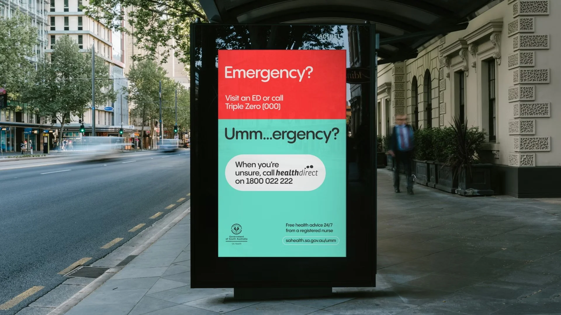 We’ve all been through the motions of wondering, ‘Do I sleep it off?’, ‘Do I call 000?’, ‘Where do I go if my GP is closed’, ‘Is this serious?’. To help shift behaviours, and delineate emergencies from non-emergencies that require varying levels of care, we distilled all of this complexity and uncertainty around the scary in-between situations into a single word, and a clear direction. Umm…ergency? Call healthdirect.